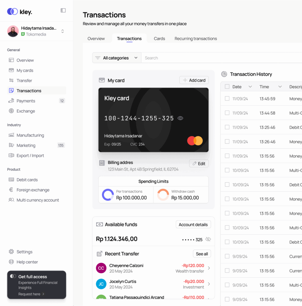 “Stay on top of your finances with real-time updates and clear visualizations. Kley’s dashboard offers instant access to spending data, budget status, and detailed financial reports, enabling you to make informed decisions quickly and effectively.”